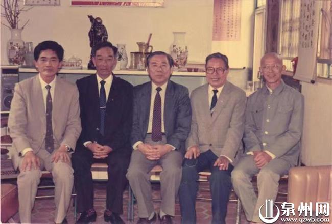 1991年秋李亦园从台返梓,与泉州文史界探讨泉州学。右起庄炳章、吴捷秋、李亦园、陈泗东、王连茂(陈笃恒 /提供)
