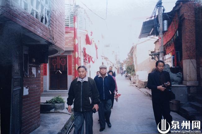 李亦园(左二)在新街,左边为清军驿,右边为联墀宫(李可丹/供图)