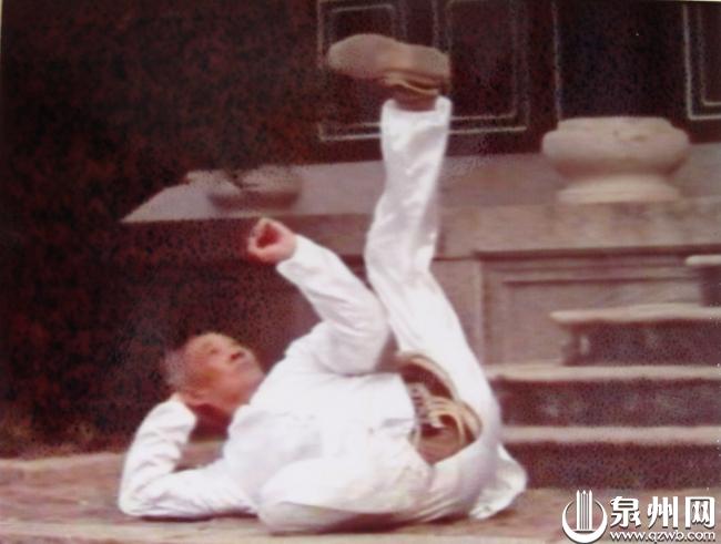 庄子深85岁高龄时的武术动作——醉卧仙床(庄昔聪/供图)