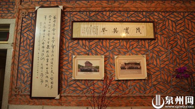 客厅墙壁书法、照片记载李亦园回乡之旅(陈晓坤/摄)