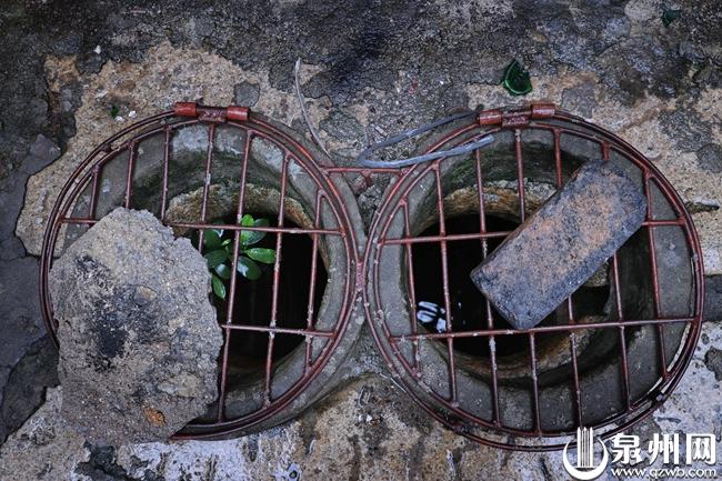 新街76号联墀宫与80号人家之间,泉州六中围墙外,新街的两口古井。(王柏峰/摄)