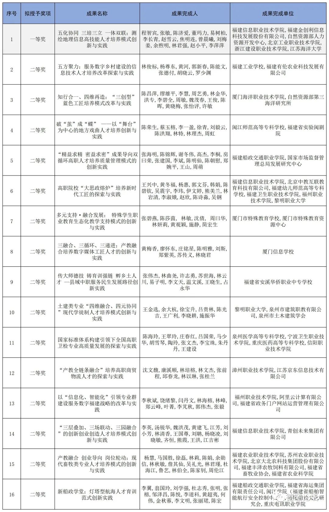 福建省职业教育领域共获奖16项,一等奖1项,二等奖15项。