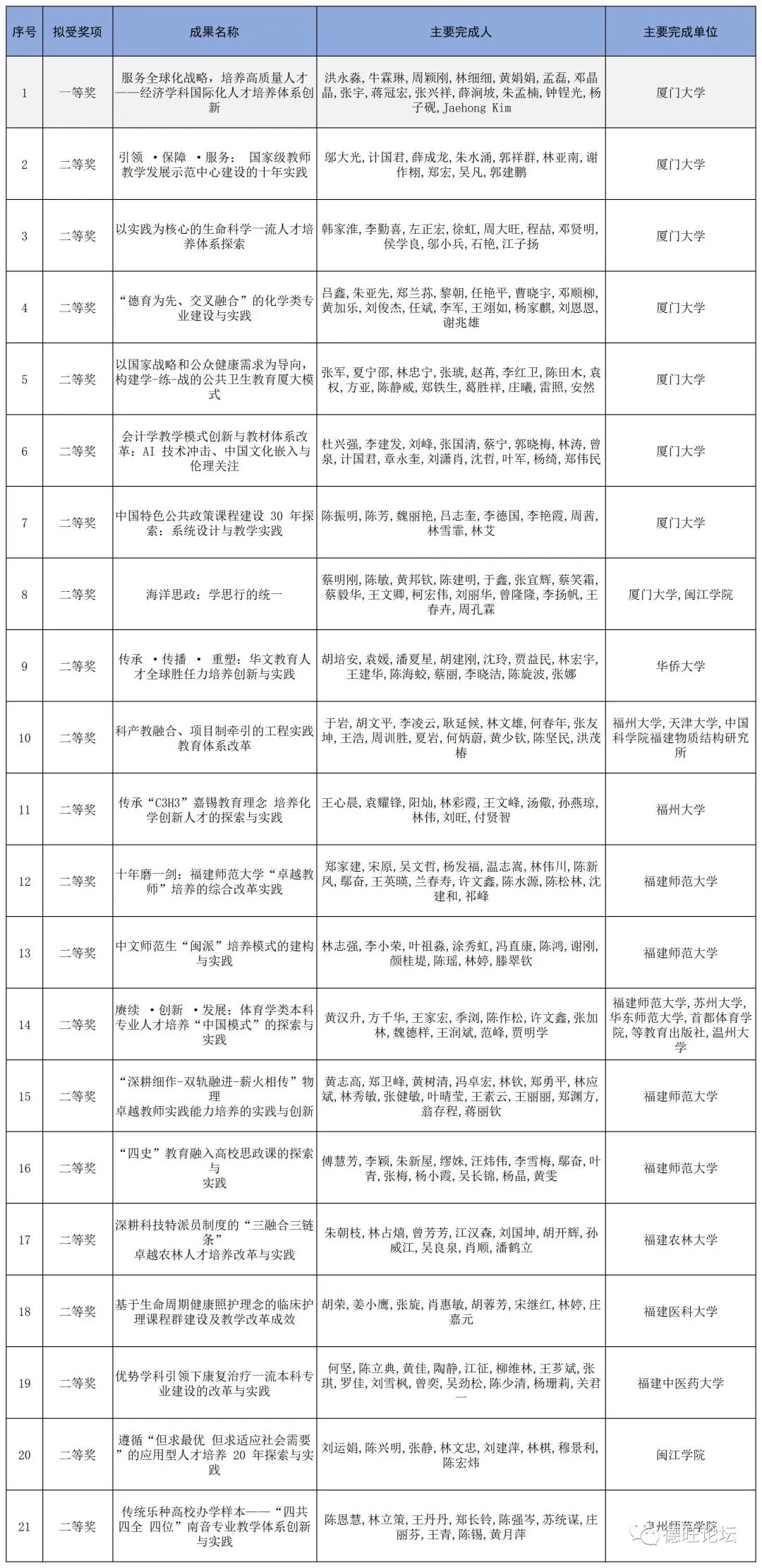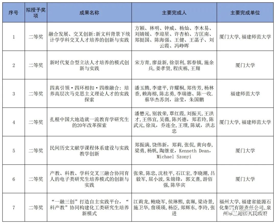 福建省高等教育(研究生)领域共获奖7项,均为二等奖。