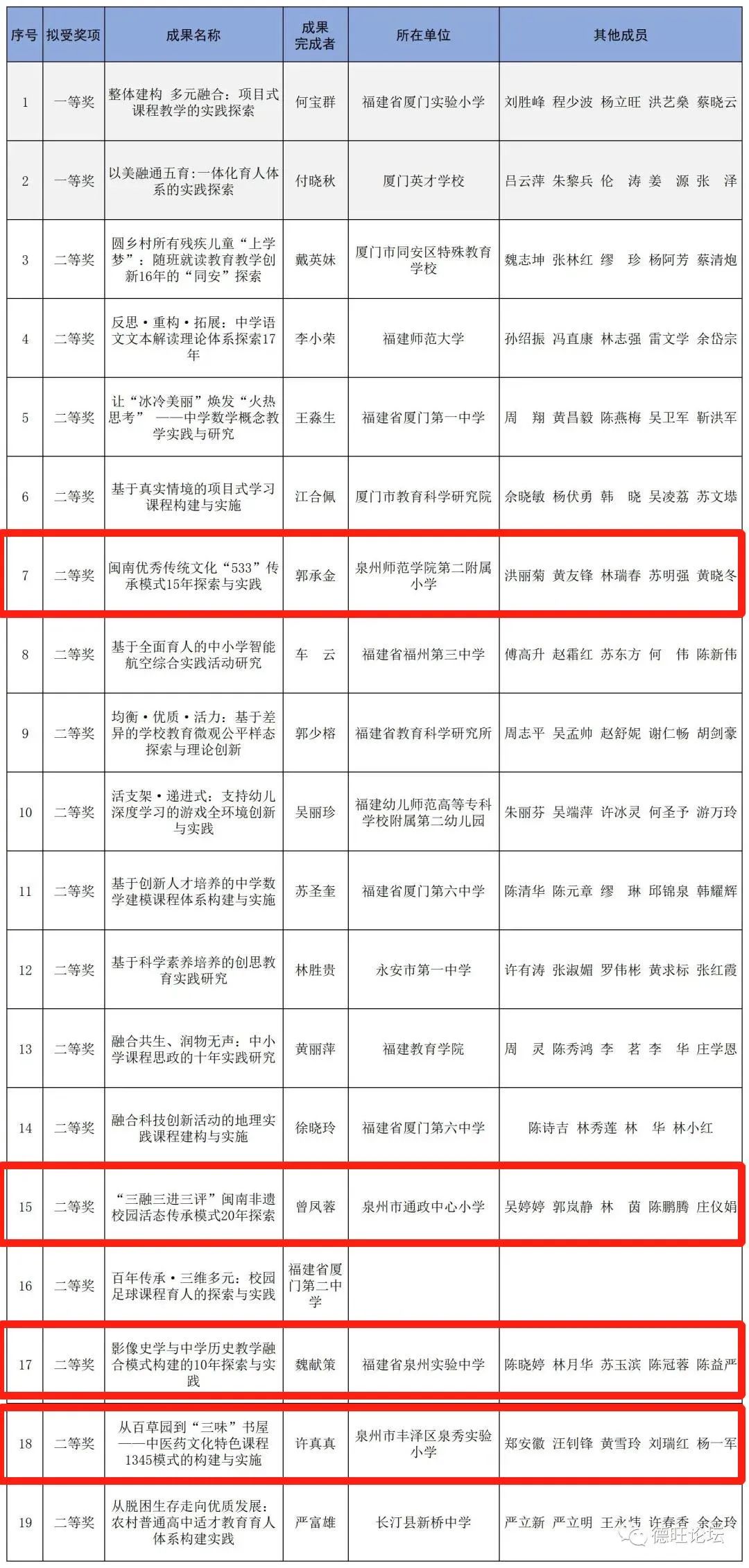 福建省基础教育领域共获奖19项,其中一等奖2项,二等奖17项。