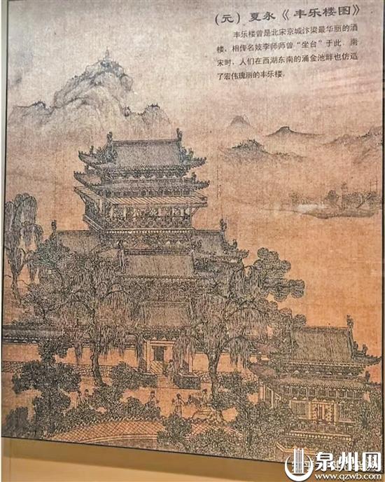 《丰乐楼图》(元),丰乐楼曾是北宋京城汴梁最华丽的酒楼,相传著名歌妓李师师曾在这里驻唱。南宋时人们在西湖东南的涌金池畔仿造了宏伟华丽的丰乐楼。