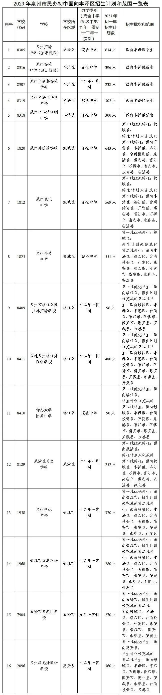 变化二:4所民办初中(5个校区)招生范围全部调整为“面向丰泽区招生”,今年民办学校招生计划数为1870人,减少690人。