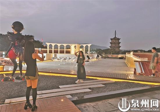 昨晚7时许,记者来到西街菜市场三楼,此时已有不少市民慕名前来观展,整个展览在空间上分三大板块,分别为室内、天台、楼梯廊道,展览的作品品类多样,包括书画、雕塑、影像、环保装置、植物装置、非遗、动漫等等。天台设计独特,搭建了具有异国特色的罗马柱与拱圆舞台,站在其中,古城风光尽收眼底,视野独好,不少年轻人纷纷拿出手机,拍照留念。