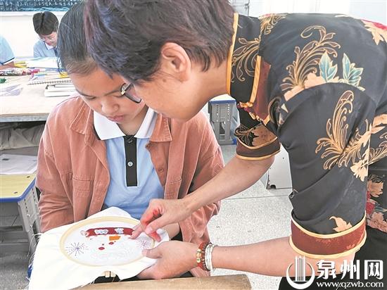 如今,为了促进传统技艺的传承与发展,陈克忍将泉州珠绣技艺带到各类院校,除了走进泉州市泉中职业中专学校的日常课堂,为学生们传授珠绣技法,指导他们创作珠绣作品之外,她还通过在福建经贸学校开展珠绣手作活动讲座,到泉州市轻工学院开展珠绣课题研究,为泉州职业技术大学的学生们开展珠绣体验课,带领闽江学院服装与艺术工程学院的师生开展珠绣研学活动等方式,让珠绣技艺一步步走进年轻人的视野中。令她欣慰的是,不少接触珠绣技艺的学生,对珠绣技艺产生兴趣,加入传承队伍,并积极探索创新方式,助力珠绣技艺及传统文化的传播。