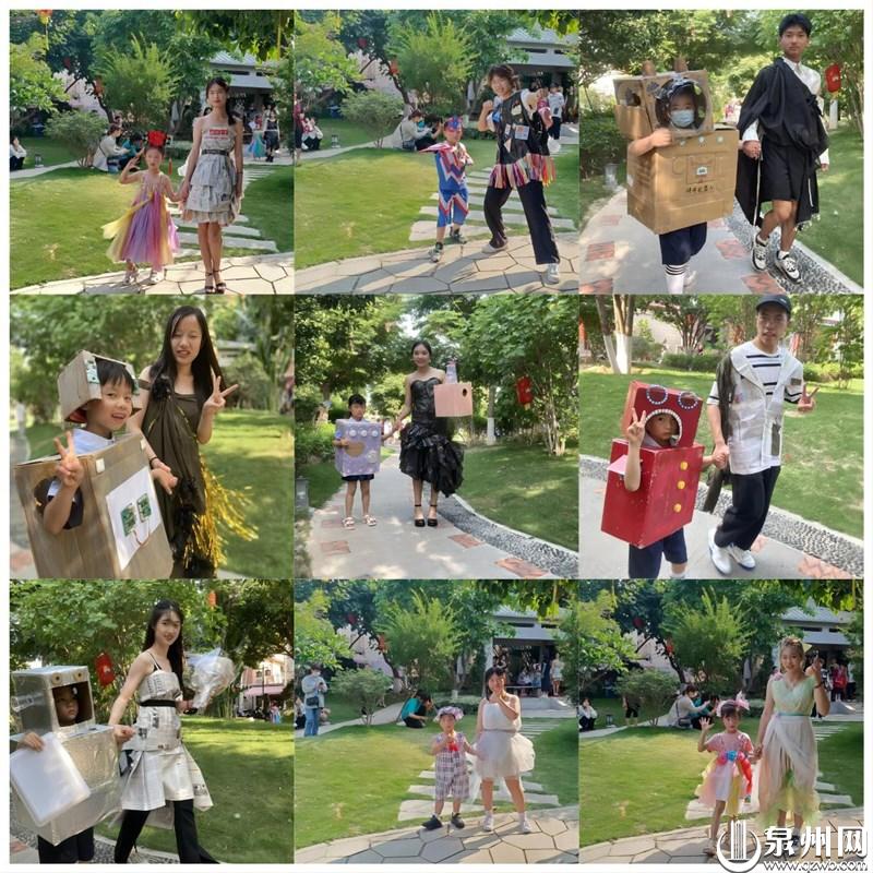 当天下午,在邻里中心的小广场和小公园内,一段创意十足、别开生面的“环保时装秀”炫酷上演。黎明职业大学服装设计专业的学生与鲤中中心幼儿园的小朋友化身大小设计师,报纸、纸箱、塑料袋、碎布等材料成为“面料”,画、剪、拼、贴等技艺融入自主设计,构思大胆,变“废”为“宝”,秀出环保理念,传递环保正能量。
