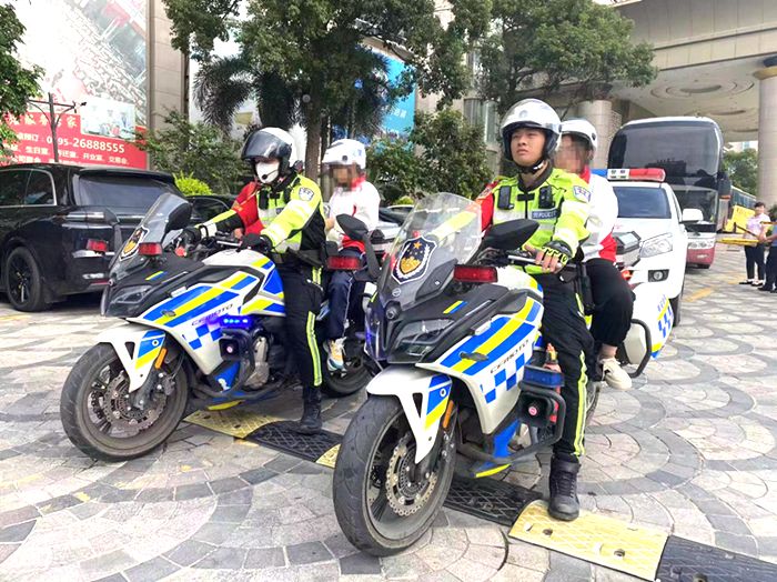 泉州网6月7日讯(记者洪荣堆 通讯员赵美缘)6月7日7时许,南安市公安局交警大队水头中队接到来自五星中学的老师求助,称该校两名学生因晕车导致身体不适,无法乘坐大巴送考车赶往考点,希望交警能够帮助将考生送至南星中学考点。接到求助后,水头中队铁骑队员黄兴伟、傅鑫源立即驾驶铁骑摩托车将考生安全快速送到了南星中学中学考点。