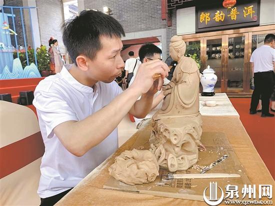 泉州网6月9日讯 (记者陈小芬 通讯员林婉清 颜煜 文/图)6月7日,第十九届中国(深圳)国际文化产业博览交易会在深圳国际会展中心(宝安)开幕。来自泉州市德化县的福建德瓷天下文化发展有限公司、福建省仟信慈艺陶瓷有限责任公司等多家文旅企业,在福建馆设置“德化白瓷”专馆,展出近百件陶瓷精品,充分展现“中国白·德化瓷”的独特魅力。展会为期5天。