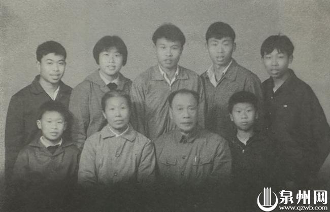 1974年,林燕婴、林平原回泉州探亲时,林家在照相馆合影,这也是全家人唯一齐全的合影照片。(前排:陈群山、黄霞云、林竹、林千山;后排:林高原、林燕婴、林平原、林中原、林太原。)