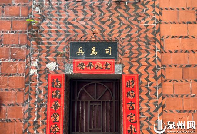 义春前街3号是义春境的境庙义春宫,义春宫南侧开有一门,门上有三个字:兵马司。据义春宫管委会成员林祖鹏介绍,以前这里有兵马司宫、兵马司桥和兵马司桥巷,西侧有一条金甲舍人巷,泉州古城5个字的巷名不多,这里就占了两个。如今这些均已不存,兵马司宫供奉的关帝移至义春宫内,因此在宫旁留下“兵马司”3个字纪念。