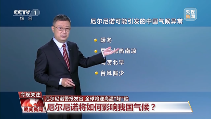 中国气象局正研级高级工程师 朱定真:厄尔尼诺出现以后,对我们国家的影响,从统计学上看它有四个方面,一个是大概率会出现暖冬天气;再一个会有在夏季的时候,会出现北热南凉的这种分布;南涝北旱现象往往都是会在厄尔尼诺年发展的年份出现的;因为西北太平洋海温是相对偏冷的一个周期,所以在这些区域生成台风的可能性就会减少。
