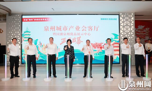 泉州网6月16日讯 (记者庄丹丹/文 陈英杰/图)作为首届“海丝”侨商投资贸易大会配套活动之一,6月15日,泉州城市产业会客厅暨国潮泉州优品展示中心正式开馆。