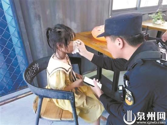 民警安抚走失的女童