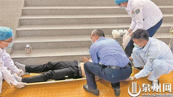 泉州网7月14日讯 (通讯员陈繁炳 记者陈小芬 文/图)“快来帮忙,这里有个旅客晕倒了。”昨天12点半左右,泉州火车站客运员洪墩成发现,出站通道躺着一名男性旅客,男子身边还有个不知所措的小女孩,周围的旅客也被这一幕吓到了。洪墩成立即上前帮忙,并用身上的电台呼叫客运班组长许施雅,两人一起对男子进行救助。