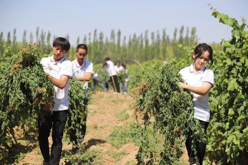实践队学生体验葡萄园劳作(图片来源:黎明职业大学)