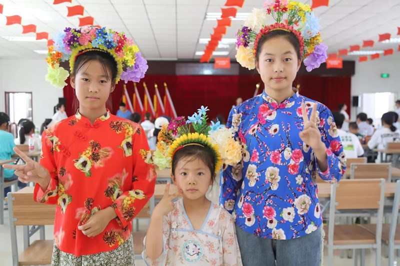福宁社区小朋友体验蟳埔女簪花围装扮(图片来源:黎明职业大学)