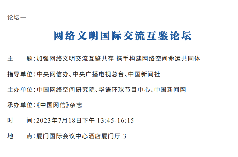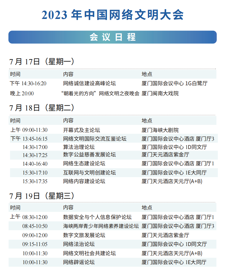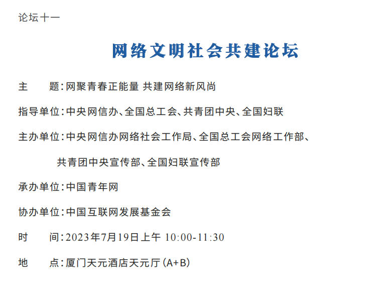 倒计时 2 天 ,2023年中国网络文明大会,7月18日即将盛大开幕。大会议程正式公布,12个分论坛也将精彩亮相。