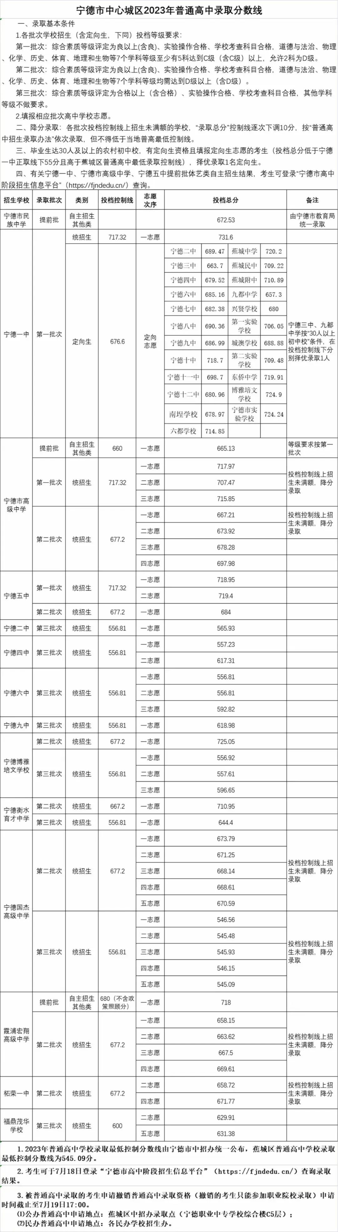 注:南平市2023年普通高中最低录取控制线:474.48分