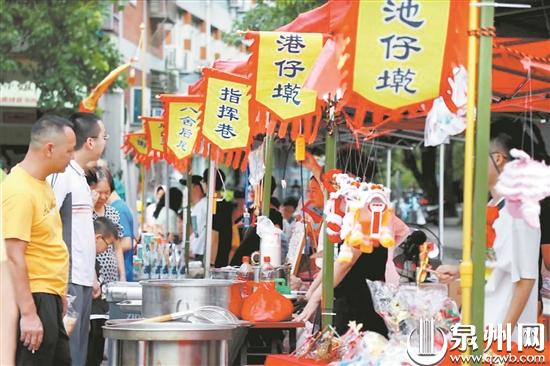 走进德济门遗址广场,在“没错!是囝仔时的味道”市集上,31个摊位有序排开,拳头母、石花膏、古法冬瓜茶等美食飘香,糖画、创意气球、冰淇淋房车等摊位体验感十足。市集摊位前,不少市民游客排队等待。来自江西南昌的熊女士首次和朋友来泉州旅游,刚好碰上城南庙会,让她十分惊喜,“现场有很多好吃的,很多是之前不曾吃过的,这里有美食,还有精彩的非遗表演,太赞啦!”