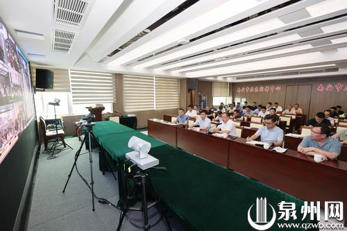 张毅恭在南安市应急指挥中心与基层乡镇、街道视频连线。