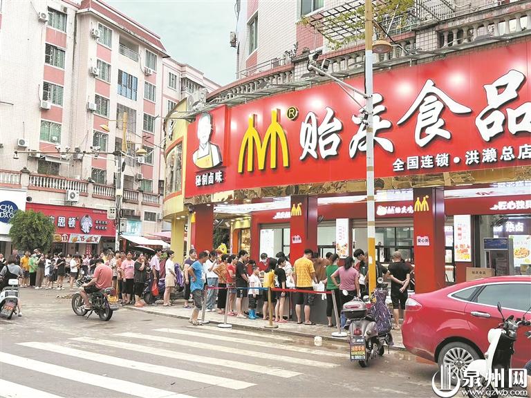 泉州网7月31日讯 (记者黄耿煌 陈灵 文/图)“这粥真香啊,太好吃了。”昨日中午12点许,在受灾最严重的南安市洪濑镇,居民在洪濑街转盘边的贻庆鸡爪店前排着长队,店内十几名工作人员抬桶、分粥、装盒、打包,忙得热火朝天。