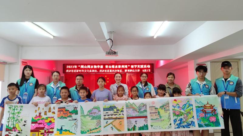 美丽中国,我是行动者;清新福建,我是宣讲员。实践队师生来到泉州成洲社区,以“福建:八山一水一分田”为主题开展宣讲,并通过“古诗词里的绿水青山”激发社区青少年兴趣与热情,指导他们共绘十米生态画卷,共话蓝蓝泉州湾,争当环保小卫士。