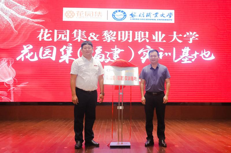 仪式上,泉州市政协副主席肖惠中、黎明职业大学校长王锋共同为“福建花园学院”揭牌,黎明职业大学土木建筑工程学院党总支书记林忠义、“花园集”创始人郑既枫作为双方签约代表上台签约,并为“花园集(福建)实训基地”揭牌。