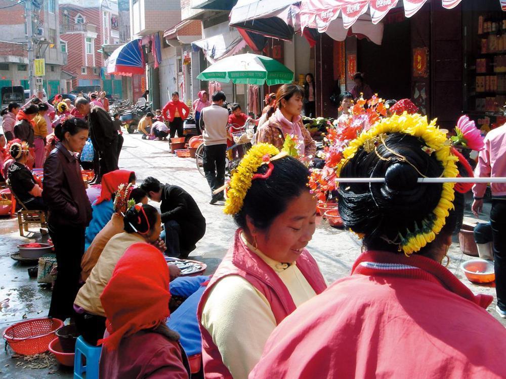 随着开渔季的到来,几天后渔船陆续返航,鱼市开张了。在泉州大大小小的菜市场,随处可见蟳埔阿姨贩卖海鲜,她们头戴“簪花围”,耳佩“丁香钩”,身着“大裾衫”,腰上别着一个“小红包”,穿行于集市之间,异常光彩夺目。