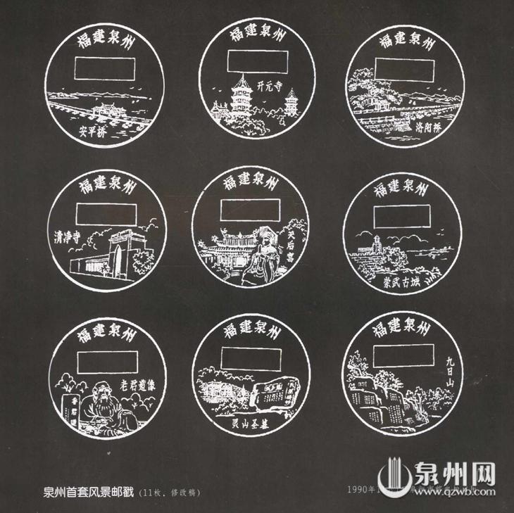 张嘉滨创作的泉州首套风景邮戳,1990年启用。(据《卧人张嘉滨》)