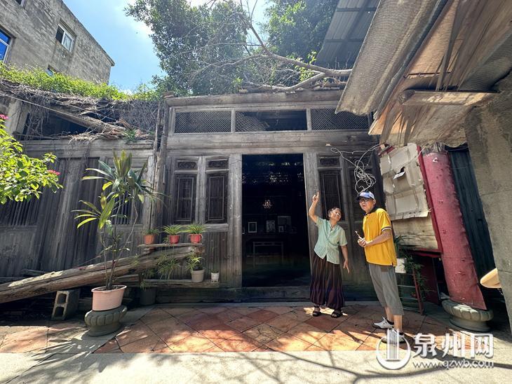 张积琳在张家祖厅前介绍家族故事,张家仅有祖厅的清代老房子保留下来。