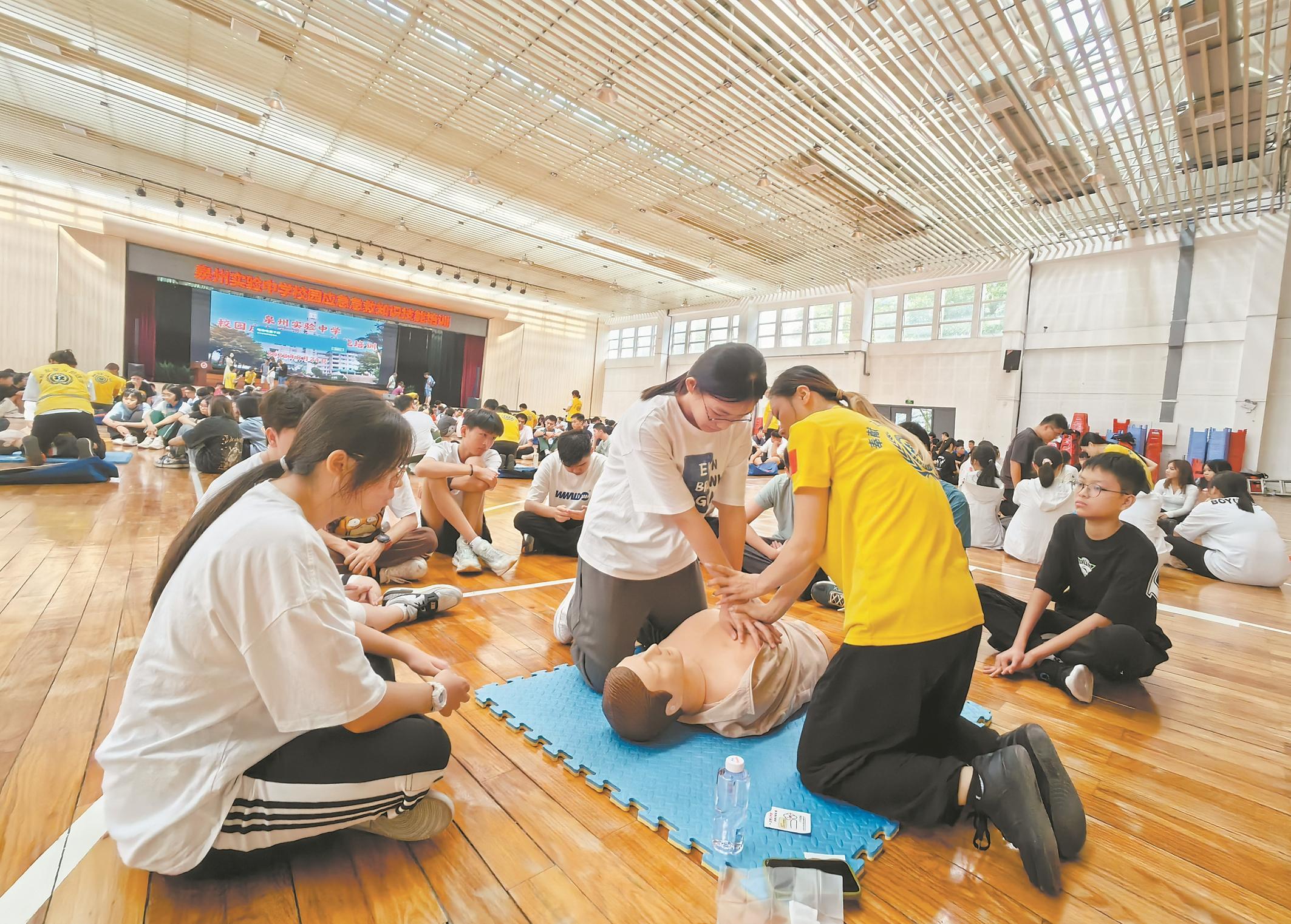 记者随后从泉州市急救指挥中心志愿者服务队了解到,这个开学季,泉州五中桂坛、城东2个校区,泉州实验中学圣湖、滨江、鲤城附属学校、台商等4个校区等学校,有4600多名高一、初一新生接受了急救技能培训,上了一堂特别的生命教育“第一课”。