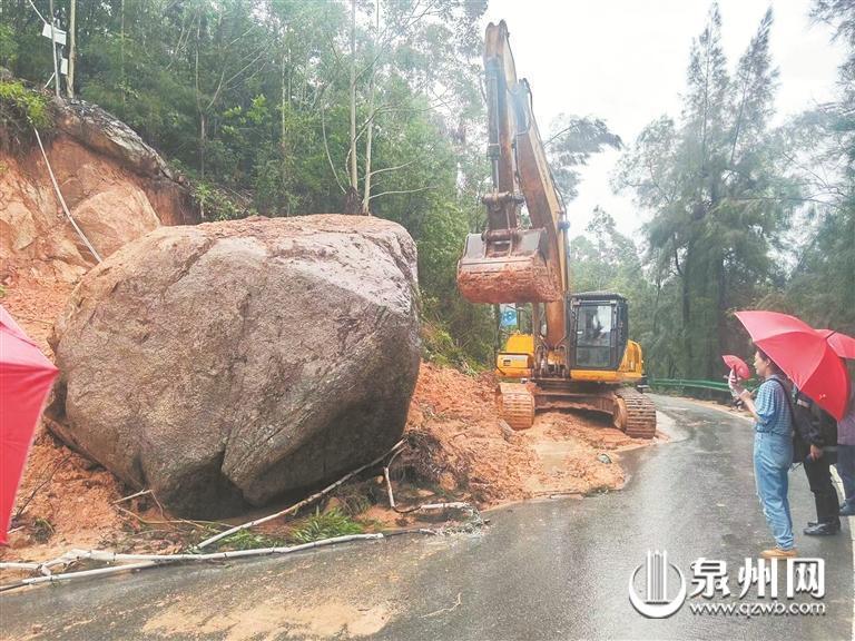 连日降雨导致清源山出现多处溜坡,景区已及时组织人员清障除险;其中一处因滑落的巨石重达近200吨,还在进一步处理中。清源山景区目前仍暂时关闭,景区管委会提醒市民游客不要进入景区,不要靠近山体、边坡,以防出现意外。(记者陈淑华 林劲峰 文/图)
