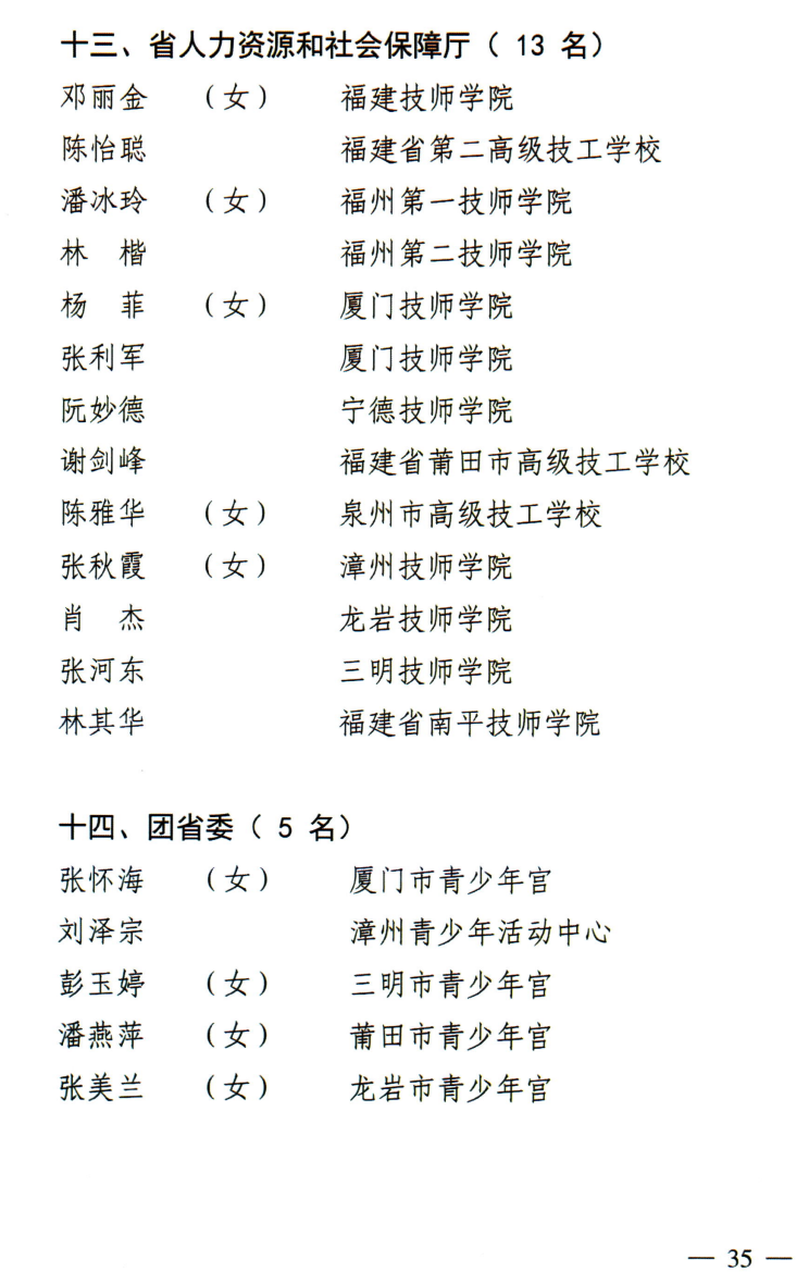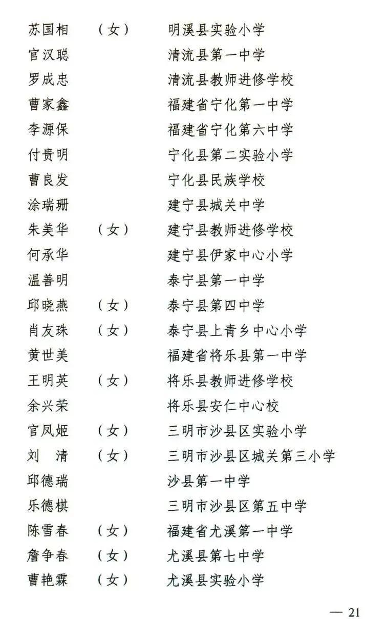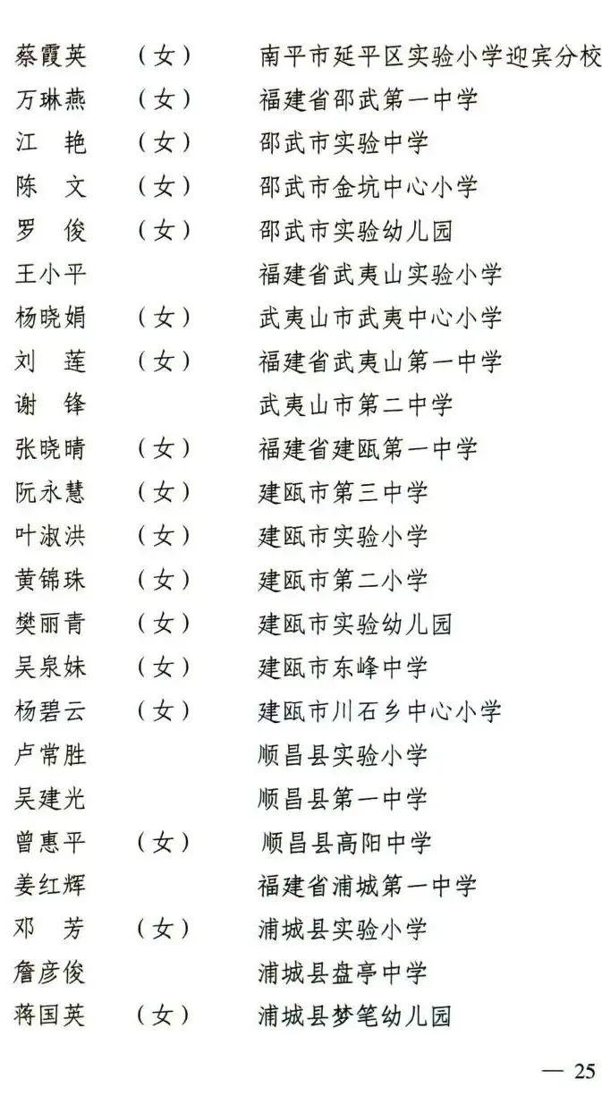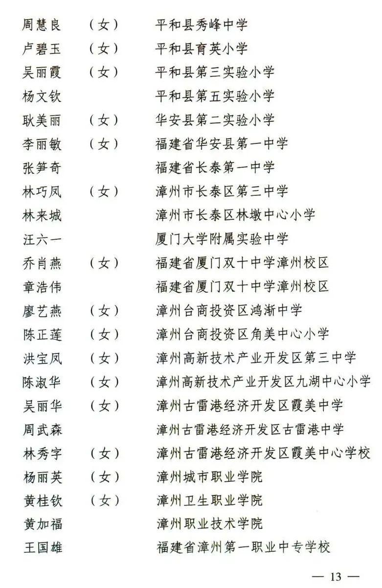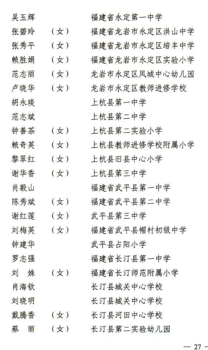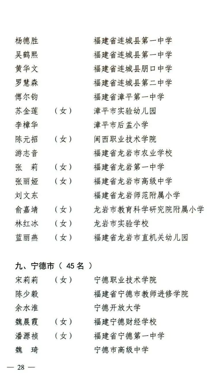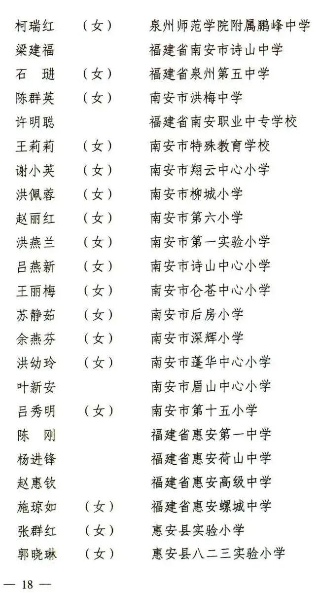 近年来,全省广大教师和教育工作者以习近平新时代中国特色社会主义思想为指导,认真学习贯彻党的二十大精神,深入贯彻落实习近平总书记关于教育的重要论述,围绕立德树人根本任务,教书育人,爱岗敬业,无私奉献,涌现出一批优秀教师和优秀教育工作者。为表彰他们的杰出贡献,进一步增强广大教师和教育工作者的荣誉感、责任感,营造尊师重教的良好社会风尚,省人社厅、省教育厅决定,授予吕佳等724人“福建省优秀教师”称号,授予张年雄等124人“福建省优秀教育工作者”称号。