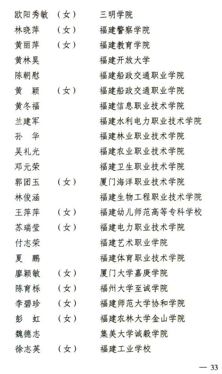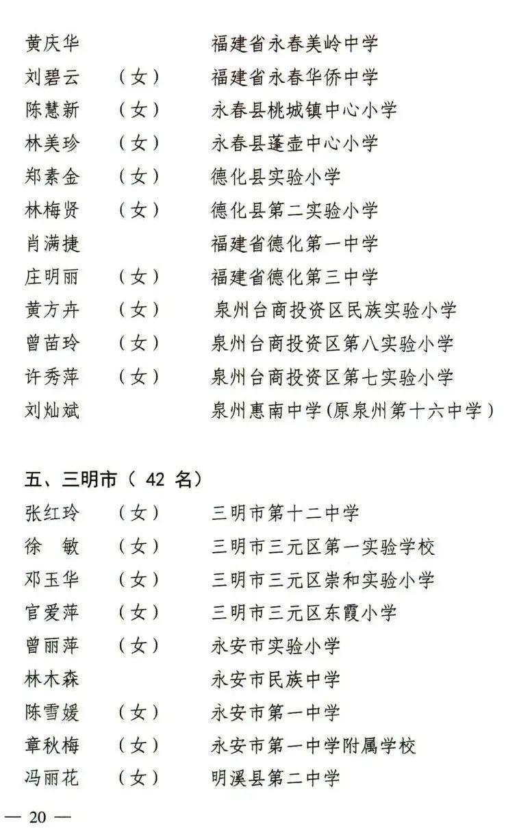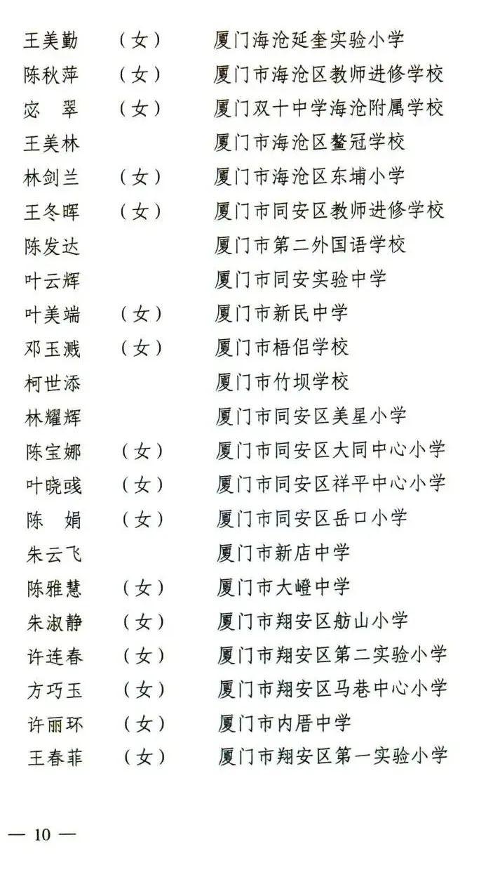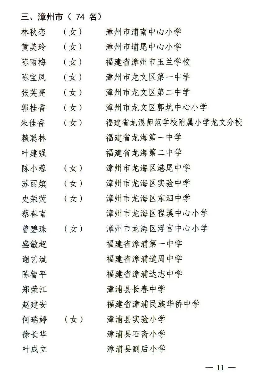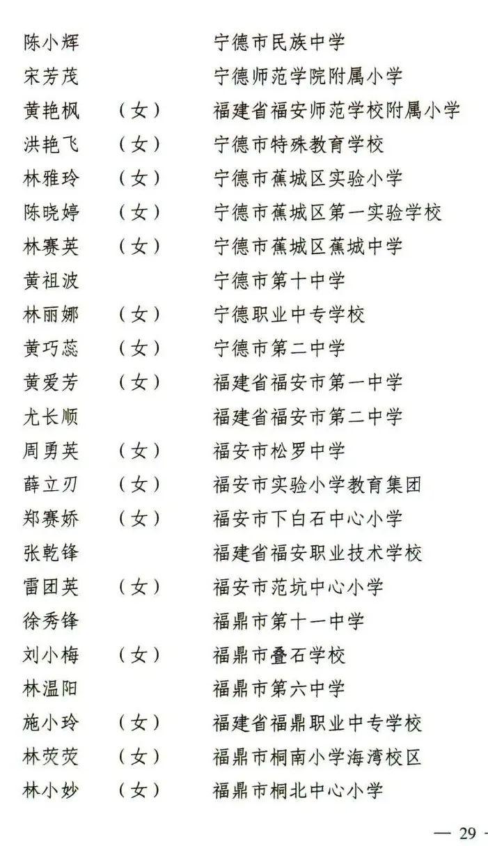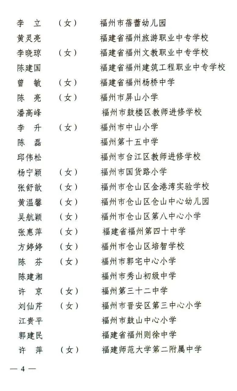 近年来,全省广大教师和教育工作者以习近平新时代中国特色社会主义思想为指导,认真学习贯彻党的二十大精神,深入贯彻落实习近平总书记关于教育的重要论述,围绕立德树人根本任务,教书育人,爱岗敬业,无私奉献,涌现出一批优秀教师和优秀教育工作者。为表彰他们的杰出贡献,进一步增强广大教师和教育工作者的荣誉感、责任感,营造尊师重教的良好社会风尚,省人社厅、省教育厅决定,授予吕佳等724人“福建省优秀教师”称号,授予张年雄等124人“福建省优秀教育工作者”称号。