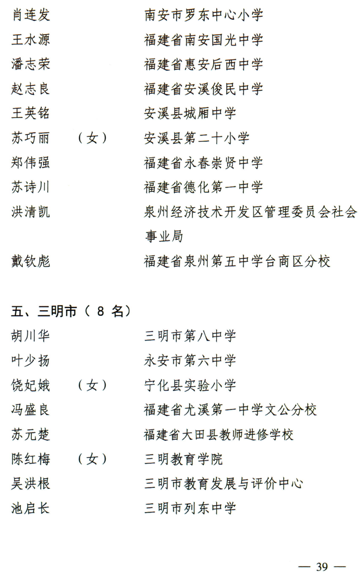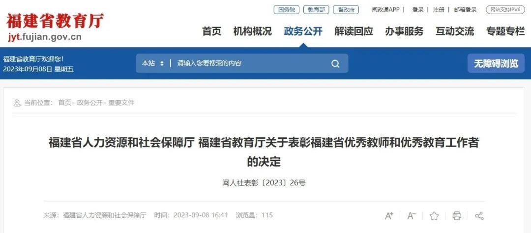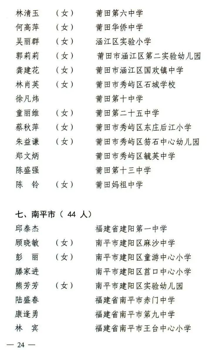 在第三十九个教师节来临之际,福建省人社厅和省教育厅决定授予吕佳等724人“福建省优秀教师”称号,授予张年雄等124人“福建省优秀教育工作者”称号。