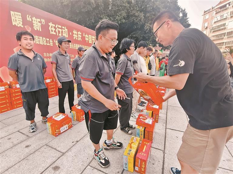 泉州网9月28日讯(记者王丽虹 文/图)昨日下午,鲤城海滨街道总工会联合新门社区工会联合会在市区芳草园广场开展“暖‘新’在行动·共庆‘中国节’”关心关爱新就业形态劳动者系列活动。