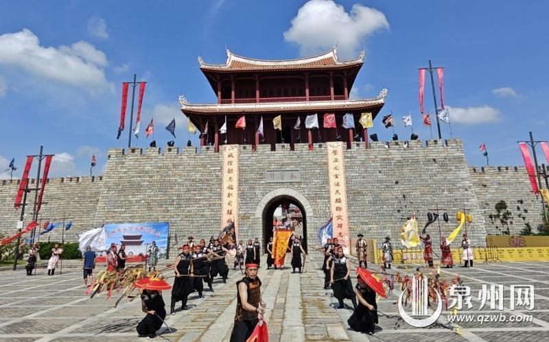 在本届文化节活动的演出中,表演者展示了复原“戚家军鸳鸯阵”阵法。相传明嘉靖年间,在抗倭名将俞大猷、戚继光统帅下,石狮当地居民以演练狮阵为形式习武练兵,操练“俞龙戚虎”首创的长短兵迭用的“鸳鸯阵法”,为保卫古卫城乃至祖国东南海疆做出了重大贡献,而当时俞大猷手书的“镇海石”等史迹,已成为如今永宁古卫城一景。