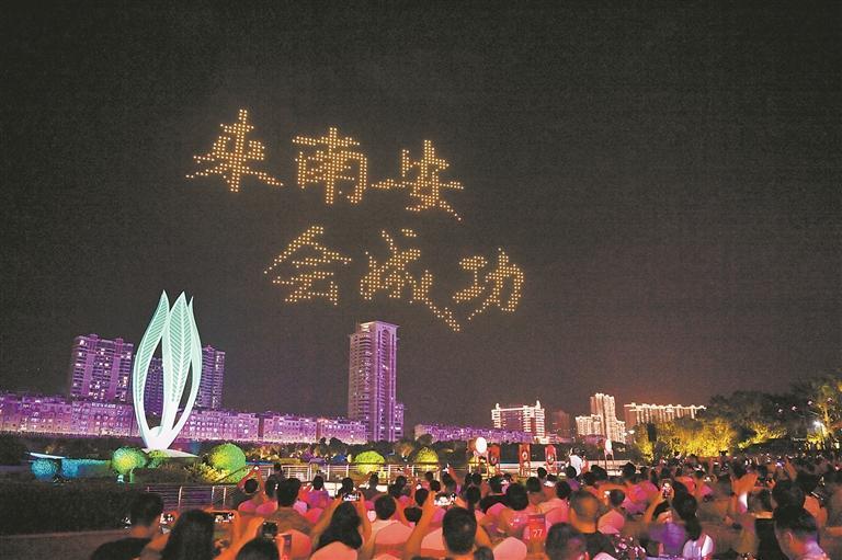 西溪两岸灯火璀璨、流光溢彩。伴随着柔美韵律,千架无人机闪耀着五彩光芒,变换出嫦娥奔月、玉兔呈祥、“海上扬帆 中国南安”、郑成功、九日山、“来南安 会成功”“喜迎国庆”等队形。随后,悦耳的南音在耳畔响起,“西溪文旅号”从远处驶来,缓缓而行,船上南音非遗传承人演绎出悠扬动听的歌声。