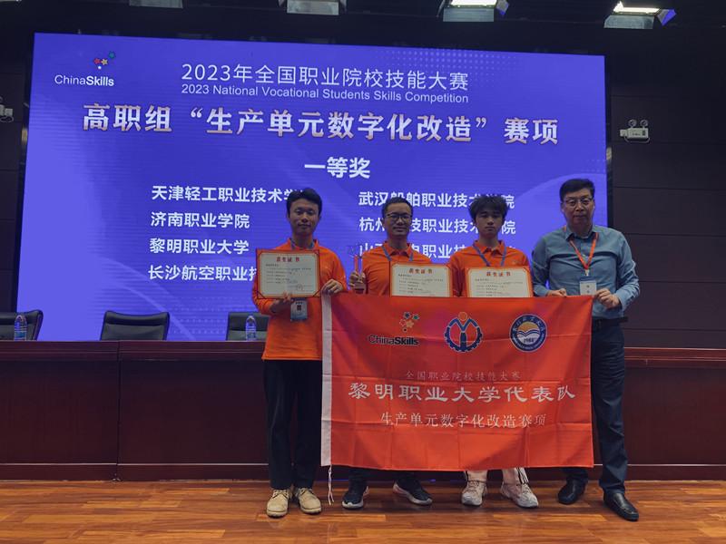 黎大代表队获得高职组生产单元数字化改造赛项一等奖(图片来源:黎明职业大学)