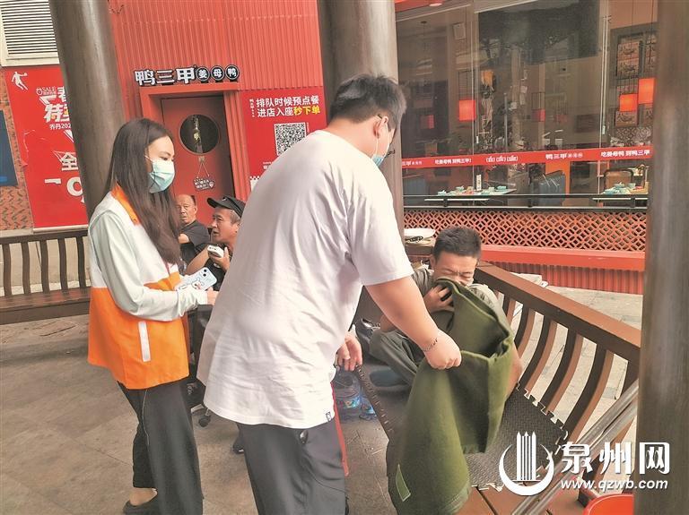 “这几天早晚温差大,我没有多余的衣服,每天晚上只能穿着单薄的衣服,感觉很冷,你们可以送我一件保暖的衣服吗?”23日,泉州市救助站值班室接到流浪人员老王的求助电话。此前,救助站工作人员走访街区时,将救助卡片分发给老王,并提醒他有需要时可以来电。考虑到老王行动不便,救助站工作人员和社工为其准备了较为轻便的毛毯和一件外套,随后驱车到新华路象峰巷口的八角亭。见到救助站工作人员和社工,老王高兴地说:“这么快就来啦,非常谢谢你们!”工作人员和社工将毛毯和衣物送到他手中,再次劝导其返乡与家人一起生活,“现在福厦高铁开通了,回山东更快更方便。”老王表示自己还是习惯外面的生活,若是想要回家或者有需要时,一定会寻求帮助。