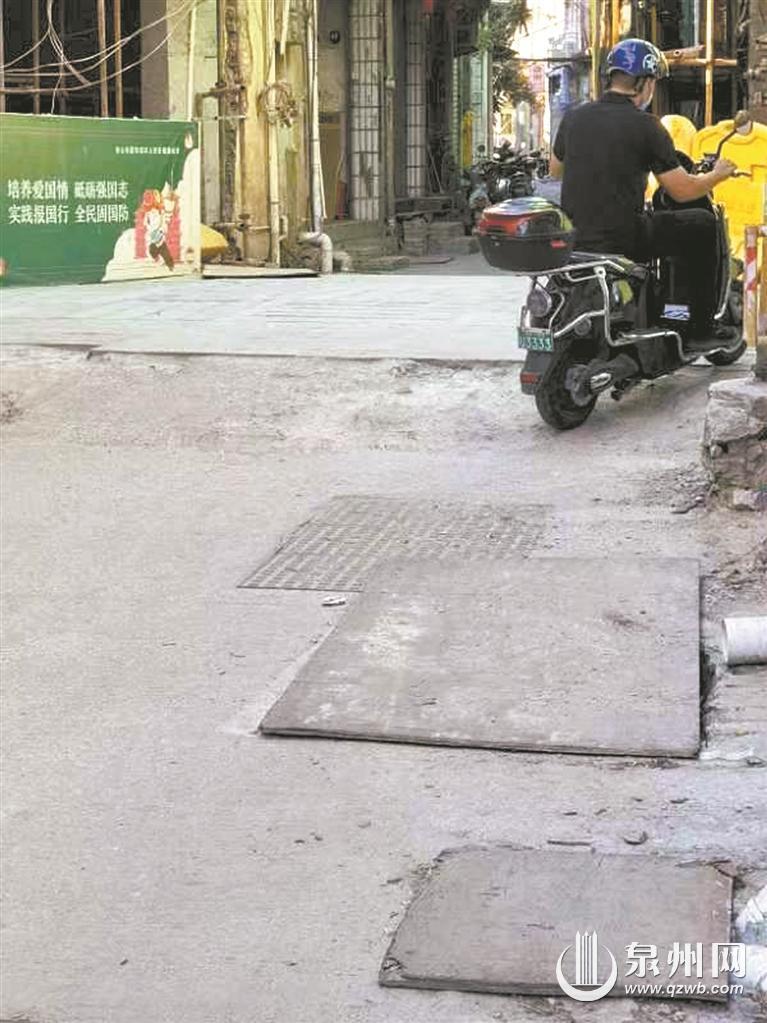 义全后街上挖有多个雨水沟,上面钉着大小不一的木板。有的地方已经出现了木板破损、钉子松脱的现象。车辆经过时,容易造成木板移动,路人可能不小心踩进去。“前段时间,就有发生路人被木板绊倒的情况。”家住中山花园小区的一位业主说。昨日记者回访看到,部分破损的木板已做了加盖和更换。