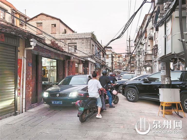 近日,记者来到立成小学附近,学校门前的宣武巷仍在提升改造中。走进改造好的指挥巷,道路左侧停了十几辆车,多处出现两车并排的情况,还有一辆车身较长的轿车横向停靠,占了将近三分之二的路面。道路右侧,一辆刺桐鲤市政车辆正在清洁作业,三三两两的电动车从旁边绕过。如果有轿车经过,彼此都要停下来互相礼让才能通过。