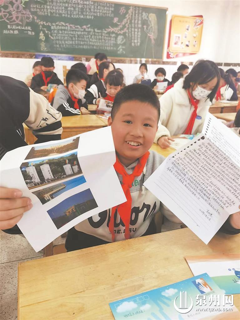 小学生展示收到的书信 (受访者供图)