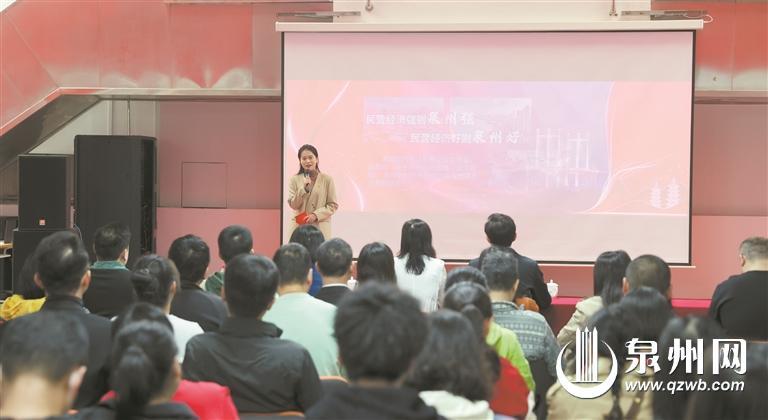 泉州市发展和改革委员会的宣讲员刘莹婷在《推动泉州民营经济由“大”到“强” 勇担新时代民营经济强省战略主力军》的宣讲中讲述,泉州举全市之力,大胆探索、改革创新,积极谋划发展民营经济新的实招硬招,明确要在建设高水平创新型城市、建设现代化产业体系、建设一流营商环境、构建亲清统一政商关系、优化民营企业高效平等获取资源要素政策中走前头、作表率,力争再创“晋江经验”新辉煌。