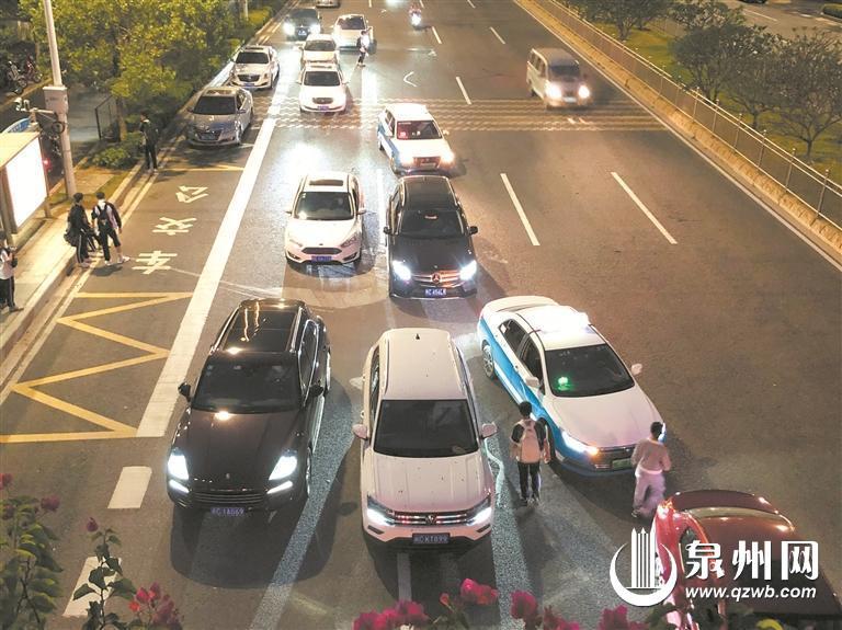 泉州实验中学滨江校区有南北两个校门,上下学时段,两个校门口路段都会变成停车场,道路拥堵不堪。昨日19时30分许,记者在泉州实验中学滨江校区通港西街门口看到,前来接送学生的车辆将校门口的道路堵住。从泉秀街与云鹿路交界的十字路口开始,不少车停放在往东海方向的通港西街上。原本路面上有三个车道,被违停车辆挤占后,仅剩一个车道供通行。记者多次走访观察到,相比学府路而言,该校两个门口道路空间比较充足,但由于一些家长随意停车导致出现拥堵。