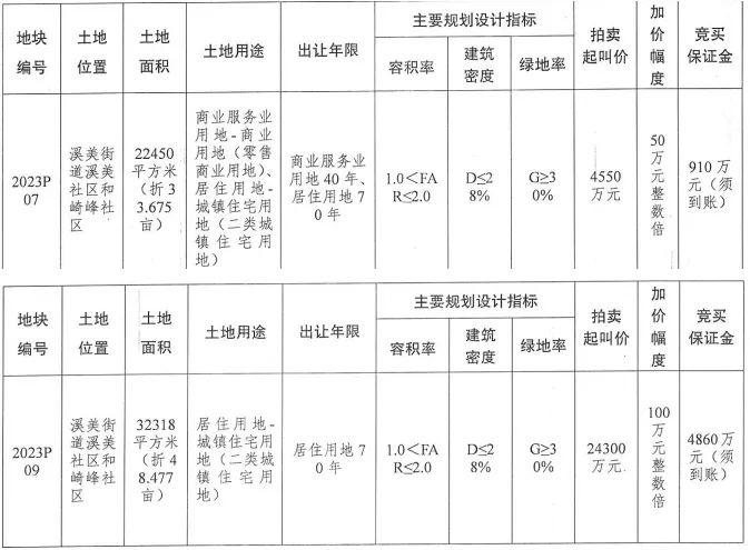 (三)2023P09号地块采用“限房价、限地价、竞配建”方式拍卖出让,限定项目建成后住宅部分最高销售均价为12000元/平方米(仅指毛坯房价格,按建筑面积计算)。该地块设定最高土地限价36000万元。本次拍卖出让在达到上限价格36000万元之前,采取价高者得的方式确定竞得人。拍卖过程中,竞买人应价或报价达到限定的最高价36000万元时,不再接受更高报价,对于有意向的多个竞买人,转为竞配建,即竞报无偿移交南安市人民政府或南安市人民政府指定的第三方的住宅建筑面积。每次竞报配建面积应为100平方米或100平方米的整数倍,竞报配建面积最多者为竞得人,成交土地出让金即为上限价格36000万元。