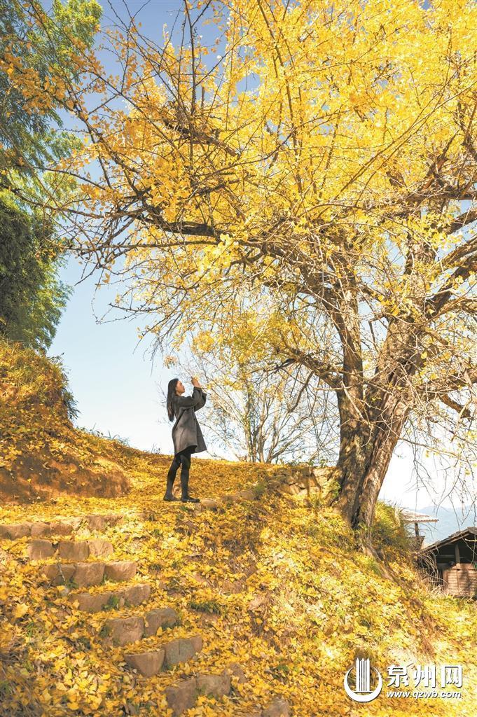 近日,在德化县杨梅乡安村村丁荣自然村,金黄的银杏与缭绕的云雾构成了一幅绝美的乡村画卷。每年这个时节,这里的银杏古树群迎来观赏季,吸引着众多游人。